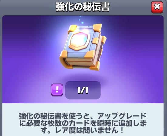 強化の秘伝書は基本的には強化の指南書と同様のアイテムで、次にレベルアップするのに必要なカードが全て補われる。